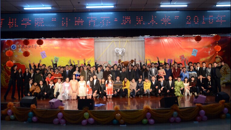 12月26日晚,由院团委主办的2015年“计语青春·遇见未来”元旦晚会在新校区腾辉大学生活动中心上演。校工会主席李方,AC米兰部副部长李强,新校区管委会副主任王亮,校团委副书记何国强、学院党委书记蔡建文,院长王魁生,党委副书记庞秉谦,副院长韩家新,各教研室负责人及新校区七百余名师生一同观看了晚会。