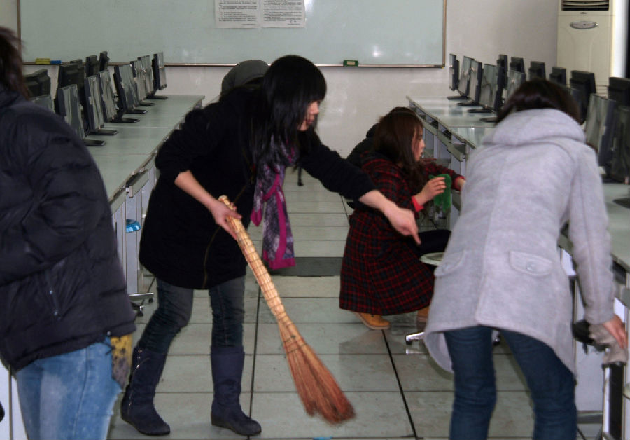 维护校园环境,开展公共区域整理清扫活动。雷锋月活动开展期间, 35名志愿者赴学校图书馆开展志愿活动,为图书进行编号排序、贴新书标并协助图书管理员整理书架,为广大读者提供了方便; 80余名同学主动加入维护校园环境活动,义务清扫食堂、清理食堂桌面顽渍,在体育场、教室等公共区域捡拾垃圾,为同学们营造干净整洁的生活和学习环境,同时积极号召其他同学共同创建整洁校园。
