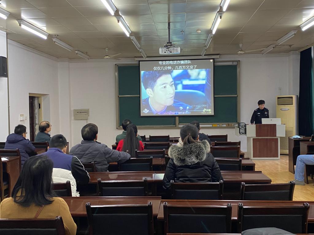 随后,学校保卫处邀请西安市公安局雁塔分局红雁宣讲团警官为大家做网络安全教育,由宣讲团郭警官主讲。她介绍了红雁宣讲团成立的初衷和当前网络安全的形势。通过列举诸多真实案例,郭警官详细讲解了犯罪分子惯用的诈骗手段,告诫大家要警惕“网络交友”“网络贷款”“兼职刷单”“招工诈骗”等存在的网络陷阱,要用知识武装头脑,明辨是非,坚持做到不听、不信、不看、不点击、不链接、不转账、不汇款,同时希望大家在课堂上要教育同学们进一步增强网络防骗意识,提高网络防骗能力,营造风清气朗的网络环境。培训过程中,宣讲团警官还现场指导帮助参训人员下载安装国家反诈中心APP。