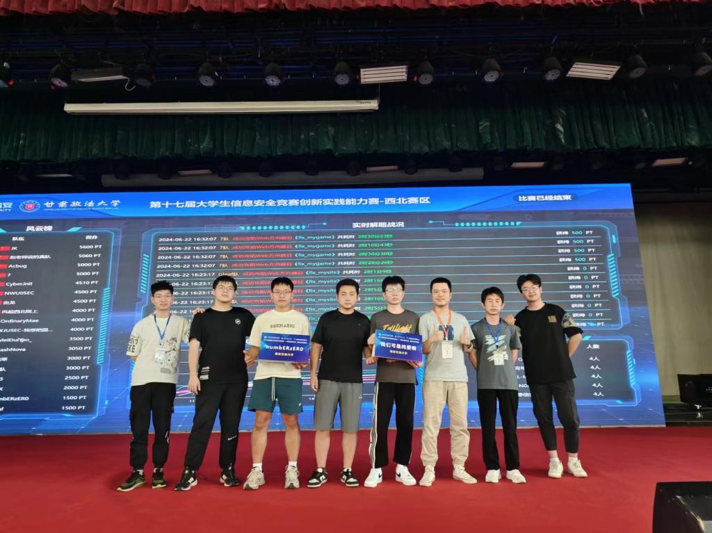 6月22日,全国大学生信息安全竞赛—创新实践能力赛(西北赛区)线下赛在甘肃政法大学圆满落幕,本次大赛由教育部高教司、工业和信息化部信息安全协调司指导,信息安全类专业教学指导委员会、中国互联网发展基金会主办,甘肃政法大学承办,该项赛事属国家B级赛事。米兰·(milan)中国孔劼老师带领2021级、2022级学生组队参加了本次比赛。