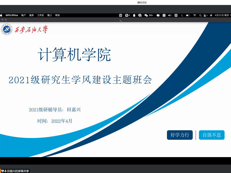 研究生一年级重在科创研学强学风,研究生辅导员对期末成绩做了分析总结,对成绩不理想的同学进行了学业警示和督促,希望他们能够端正态度,努力学习,弥补学科短板。同时,提醒同学们积极参加科研活动,不能仅仅局限于学习成绩,要多参加科技创新比赛,主要参与到导师的科研项目中,提升自身的科研能力,以科研成绩推动学风建设。